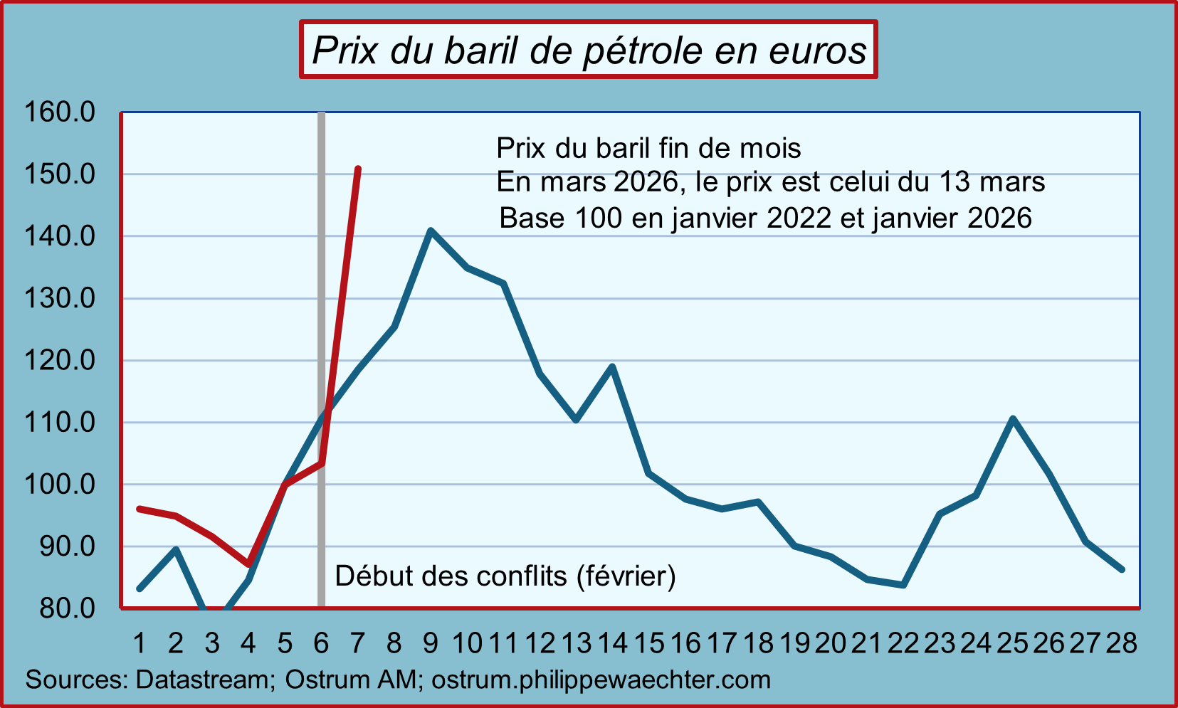 Le prix du baril a progressé plus vite en 2026 qu'en 2022. C'est le premier graphe. Cela va se prolonger, voire s'accentuer, en raison du blocage du détroit d'Ormuz.