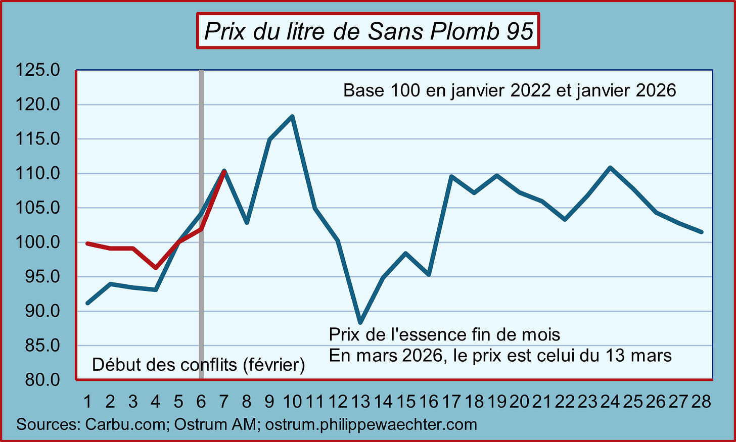 Pour les prix de mars 2026, j'ai prix ceux du 13 mars (vendredi dernier)